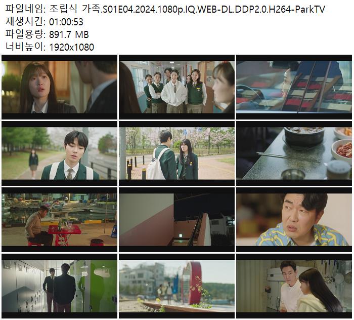 | 조립식 가족.S01E04.2024.1080p.IQ.WEB-DL.DDP2.0.H264-ParkTV.mkv | 891.7 M | - | 1920x1080 |