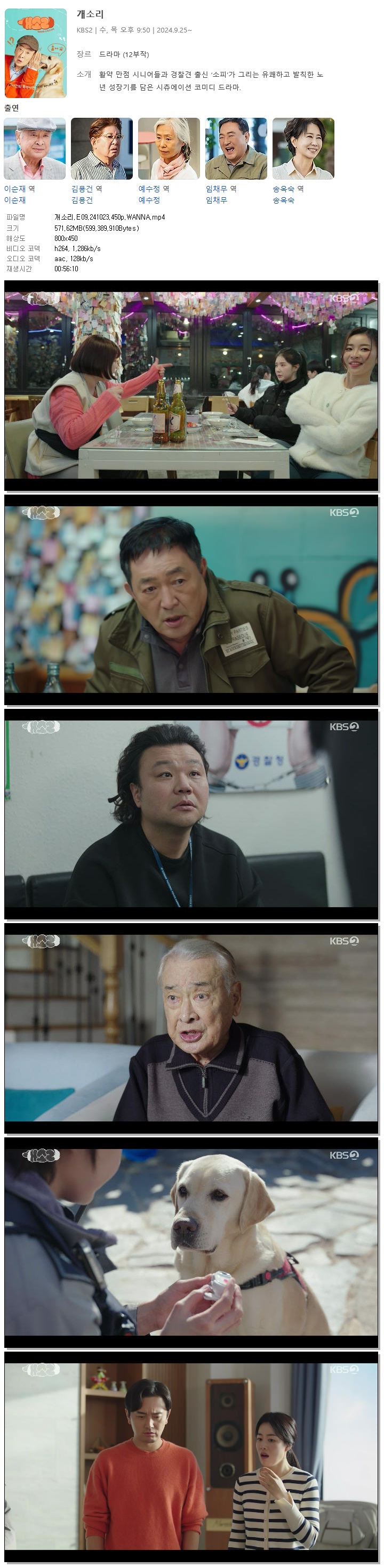 | 개소리.E09.241023.450p.WANNA.mp4 | 571.6 M | 00:56:10 | 800x450 |