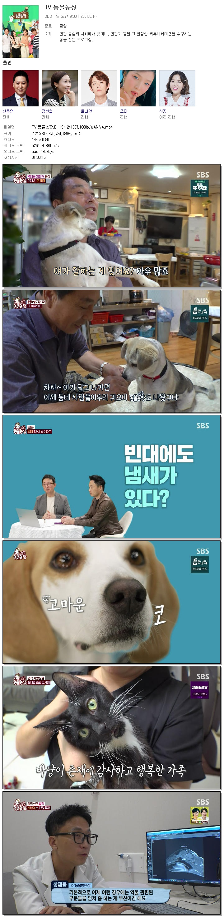 | TV 동물농장.E1194.241027.1080p.WANNA.mp4 | 2.2 G | 01:03:16 | 1920x1080 |