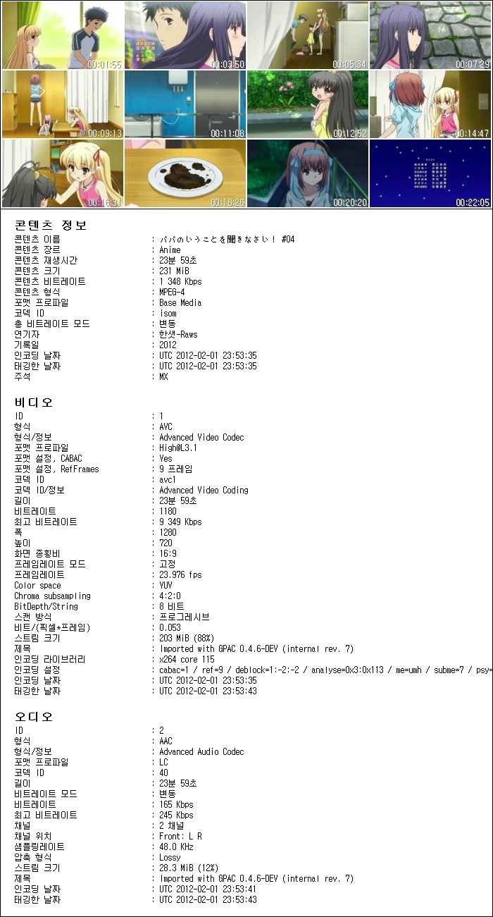 | [한샛-Raws] Papa no Iukoto wo Kikinasai! #04 (MX 1280x720 x264 AAC).mp4 | 231.4 M | - | - |