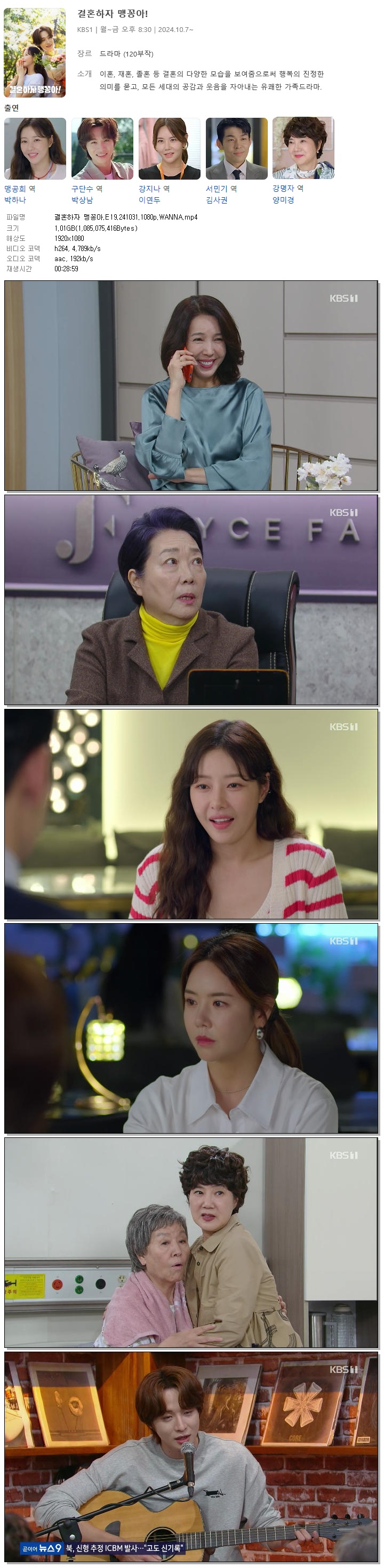 [KBS1] 결혼하자 맹꽁아.E19.241031.1080p.WANNA[박하나, 박상남].mp4 1 G 00:28:59 1920x1080