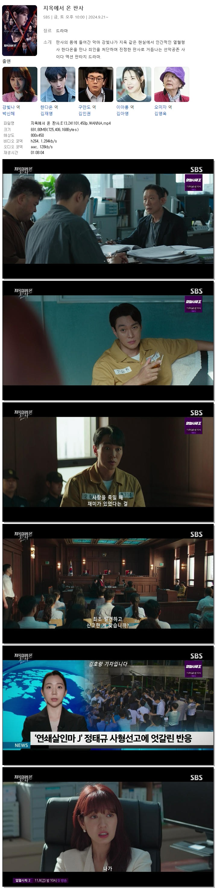 [SBS] 지옥에서 온 판사.E13.241101.450p.WANNA[박신혜, 김재영] 다시보기 토렌트