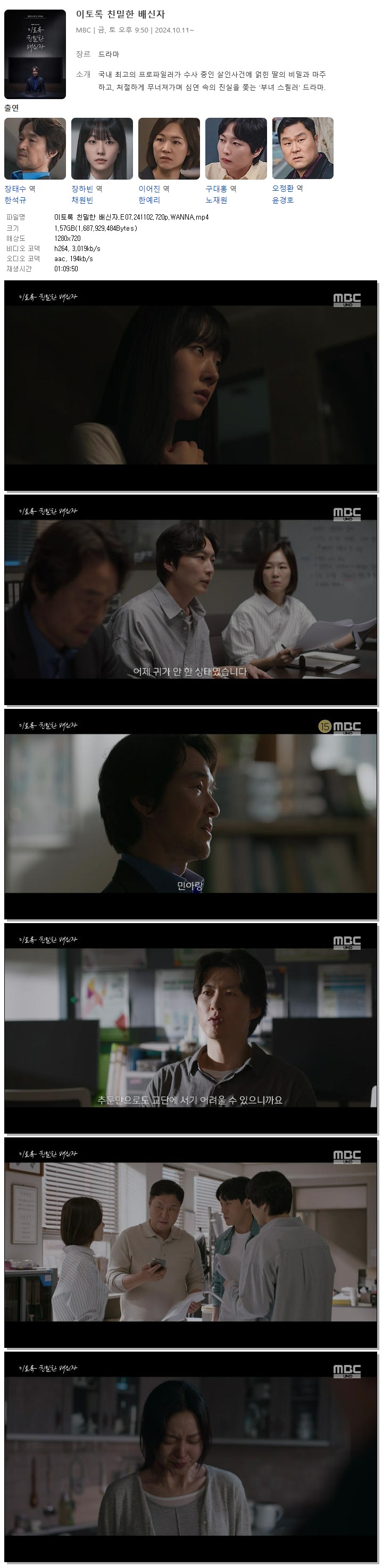 [MBC] 이토록 친밀한 배신자.E07.241102.720p.WANNA[한석규, 채원빈].mp4 1.6 G 01:09:50 1280x720
