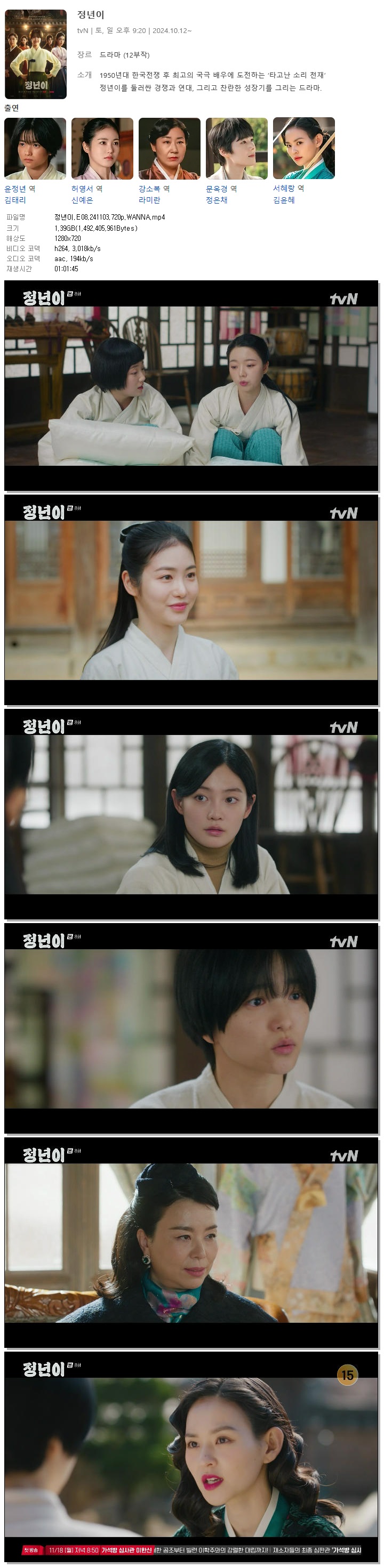 [TVN] 정년이.E08.241103.720p.WANNA[김태리, 신예은].mp4 1.4 G 01:01:45 1280x720
