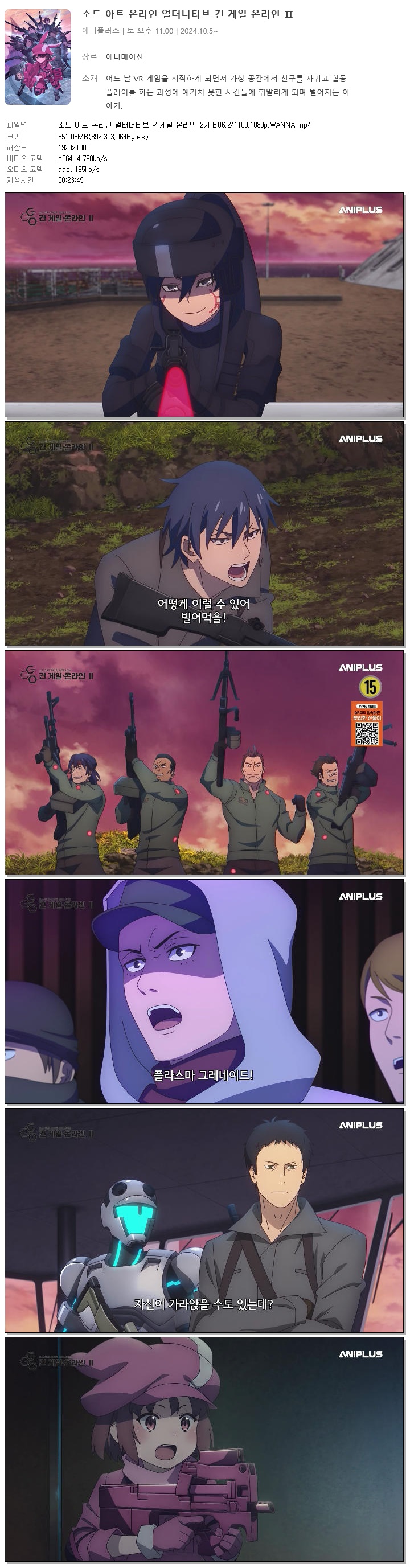 | 소드 아트 온라인 얼터너티브 건게일 온라인 2기.E06.241109.1080p.WANNA.mp4 | 851.1 M | 00:23:49 | 1920x1080 |