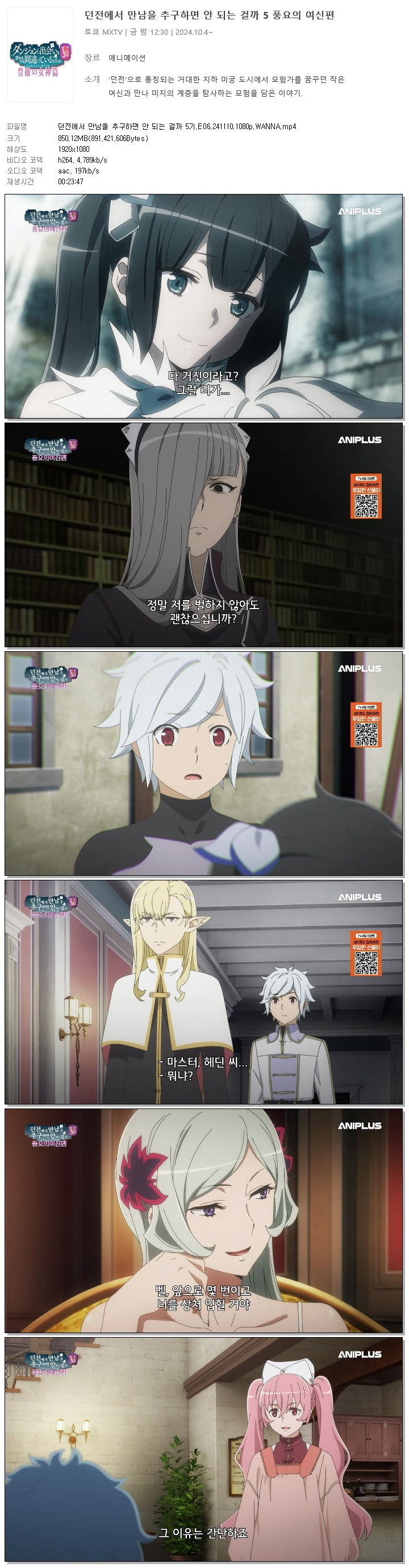 던전에서 만남을 추구하면 안 되는 걸까 5기.E06.241110.1080p.WANNA 다시보기 토렌트