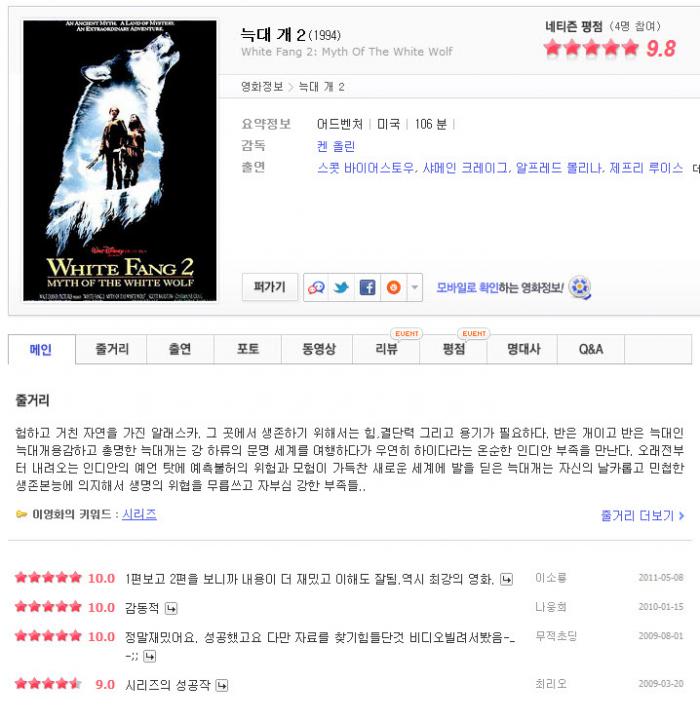 평9.8 [희귀자료] 늑대 개 2 [White Fang 2 Myth Of The White Wolf, 1994] 다시보기 토렌트