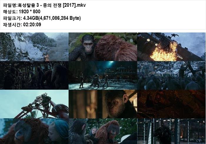[자막] 앤디 서키스.우디 해럴슨 주연 액션영화 혹성탈출3-종의 전쟁 [2017].mkv 4.4 G - 1920x800
