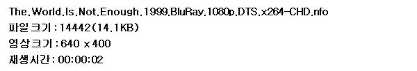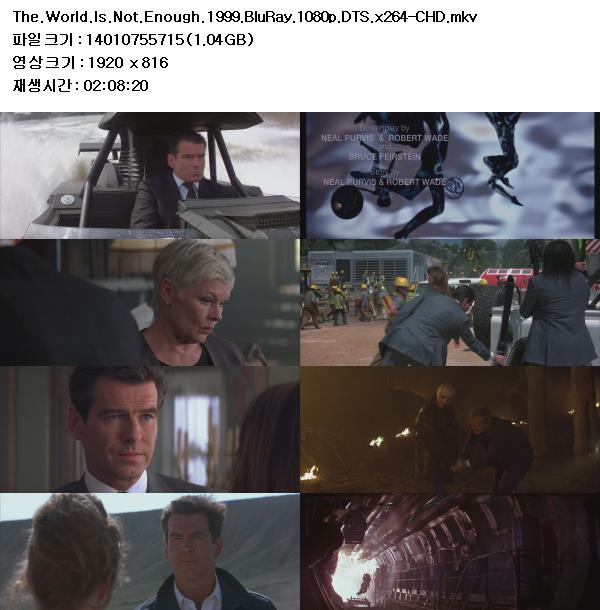 | The.World.Is.Not.Enough.1999.BluRay.1080p.DTS.x264-CHD.mkv | 13 G | - | 1920x1080 |