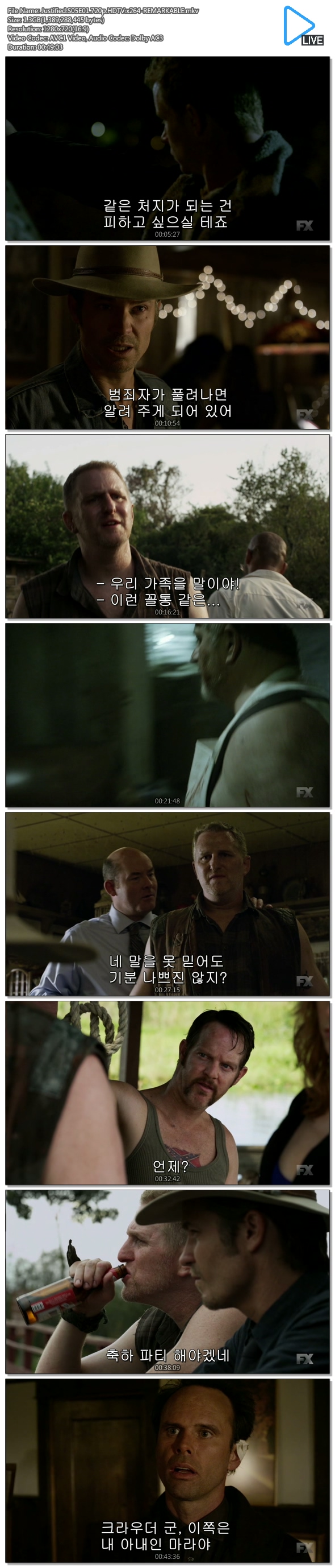 Justified.S05E01.720p.HDTV.x264-REMARKABLE.mkv 1.3 G - 1280x720