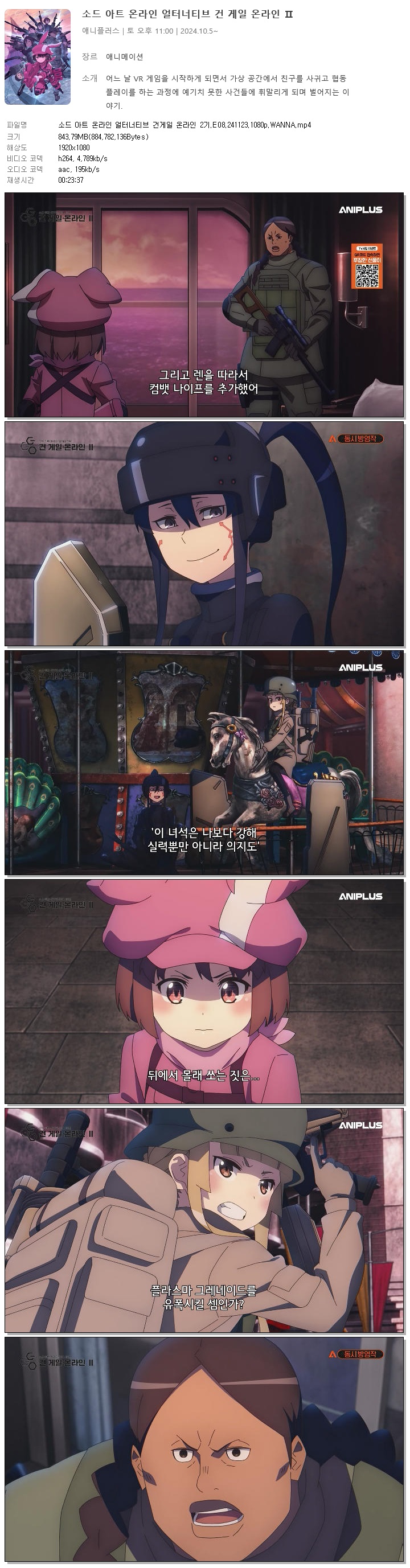 | 소드 아트 온라인 얼터너티브 건게일 온라인 2기.E08.241123.1080p.WANNA.mp4 | 843.8 M | 00:23:37 | 1920x1080 |