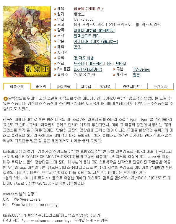 [2004년]암굴왕 Gankutsuou 09화~16화(24화 완결) 독특한 그림체에 빠져보자~ 다시보기 토렌트