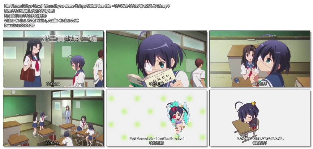 | [Ohys-Raws] Chuunibyou demo Koi ga Shitai! Ren Lite - 03 (Web 960x540 x264 AAC).mp4 | 58.4 M | - | - |