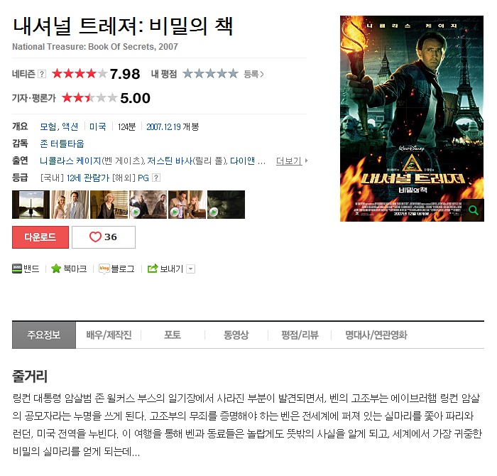 [모험 액션] 내셔널 트레져 2 비밀의 책 니콜라스 케이지 주연 다시보기 토렌트