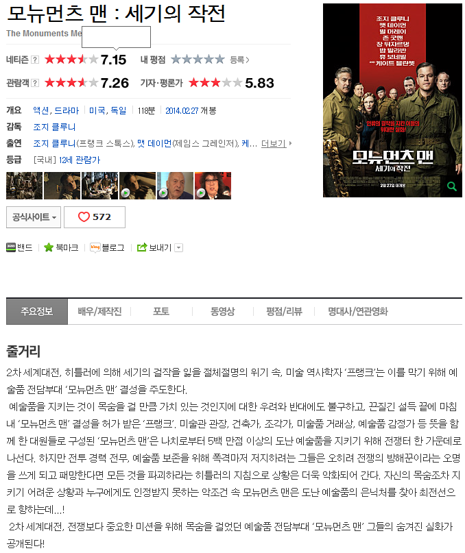 세기의작전 모뉴먼츠맨 조지클루니 다시보기 토렌트