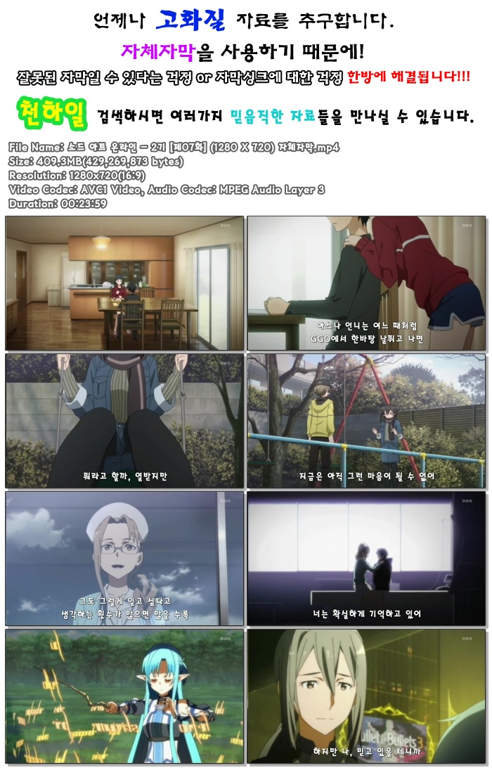[천하일] [소드 아트 온라인-2기].07화, 720p 고화질 자체자막 Sword Art Online 소아온 sao II