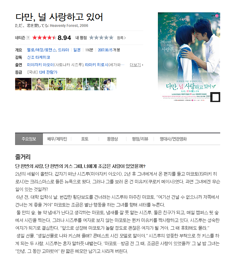 평점8.94]다만, 널 사랑하고 있어(ただ、君を愛してる: Heavenly Forest 다시보기 토렌트
