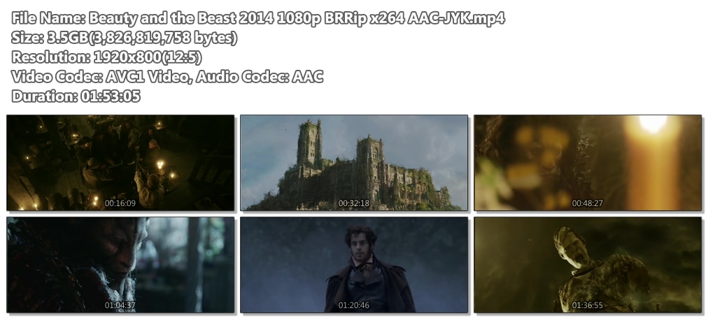 Beauty and the Beast 2014 1080p BRRip x264 AAC-JYK.mp4 3.6 G - 1920x1080