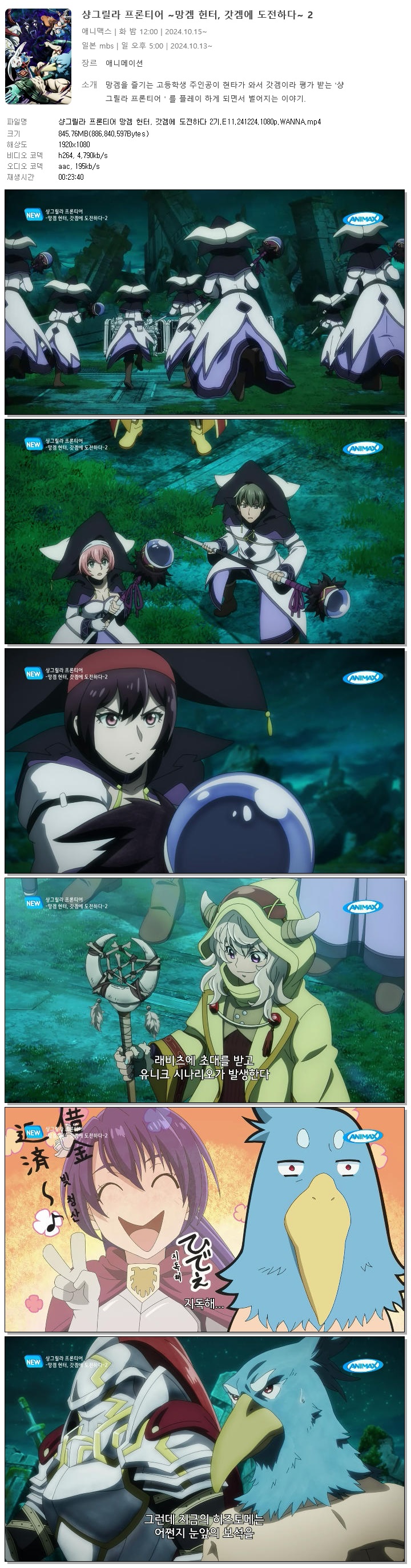 샹그릴라 프론티어 망겜 헌터, 갓겜에 도전하다 2기.E11.241224.1080p.WANNA 다시보기 토렌트