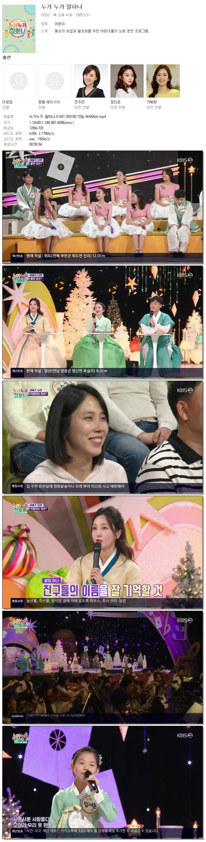 | [KBS2] 누가누가 잘하나.E947.250109.720p.WANNA[김진현, 캘벨 에이시아].mp4 | 1.2 G | 00:55:54 | 1280x720 |