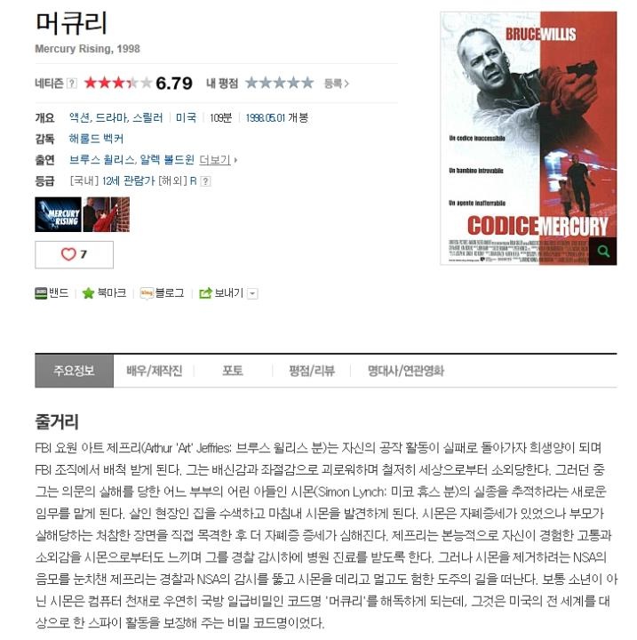 [ 머큐리 ] - 액션,드라마,스릴러.1998 브루스윌리스 다시보기 토렌트