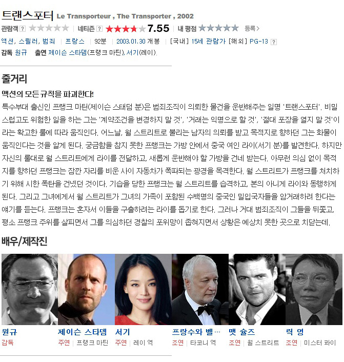 | 트랜스포터1. The.Transporter.2002.UNCUT.mkv | 4.4 G | - | - |