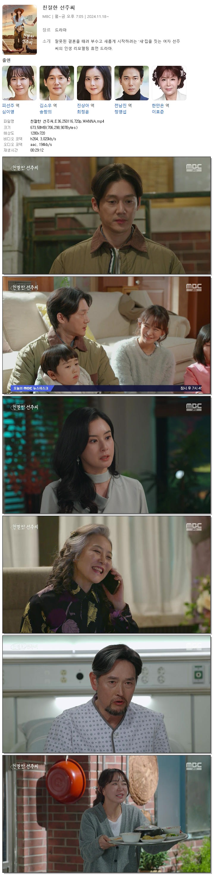 [MBC] 친절한 선주씨.E36.250116.720p.WANNA[심이영, 송창의].mp4 673.6 M 00:29:12 1280x720