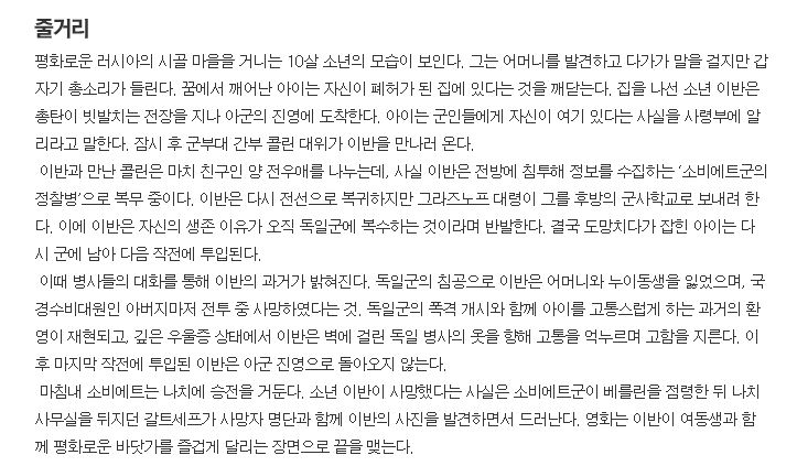 베니스 영화제 대상!! 매혹적인 러시아 영화 [ 이반의 어린시절 ] 다시보기 토렌트