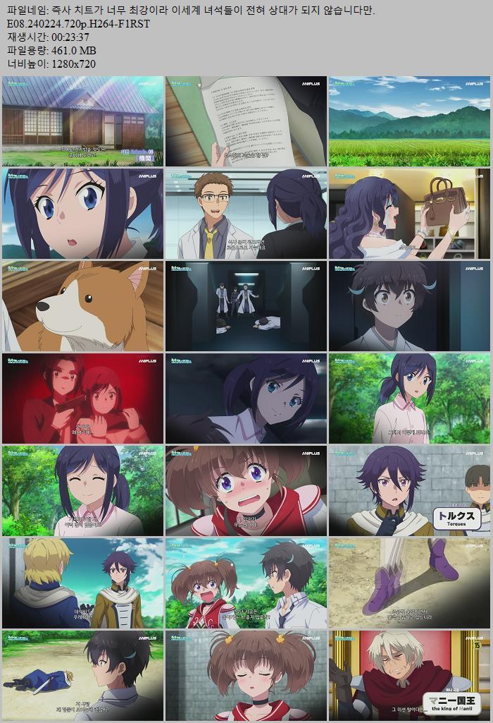 | 즉사 치트가 너무 최강이라 이세계 녀석들이 전혀 상대가 되지 않습니다만.E08.240224.720p.H264-F1RST.mp4 | 461 M | - | 1280x720 |