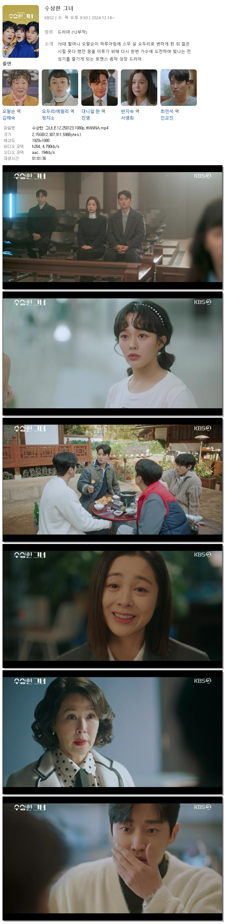 [KBS2] 수상한 그녀.E12.250123.1080p.WANNA[김해숙, 정지소] 다시보기 토렌트