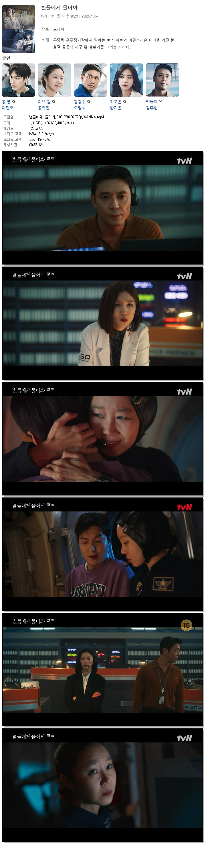[TVN] 별들에게 물어봐.E08.250126.720p.WANNA[이민호, 공효진].mp4 1.3 G 00:58:12 1280x720