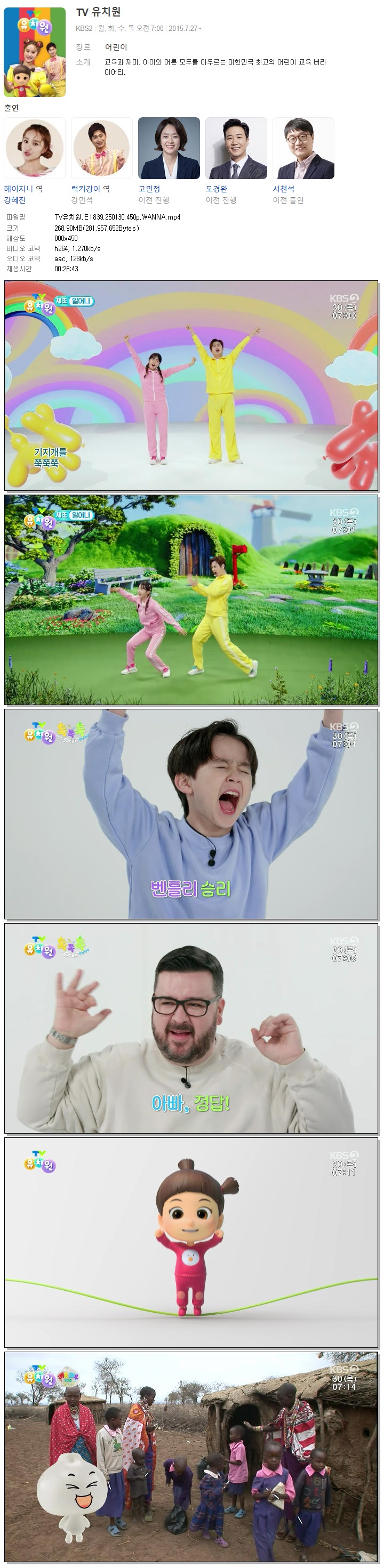 [KBS2] TV유치원.E1839.250130.450p.WANNA[헤이지니] 다시보기 토렌트