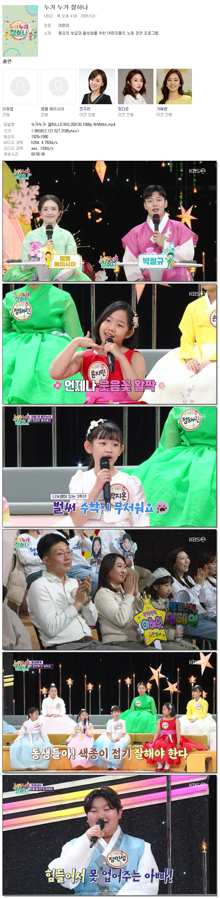 [KBS2] 누가누가 잘하나.E950.250130.1080p.WANNA[김진현, 캘벨 에이시아].mp4 2 G 00:56:38 1920x1080