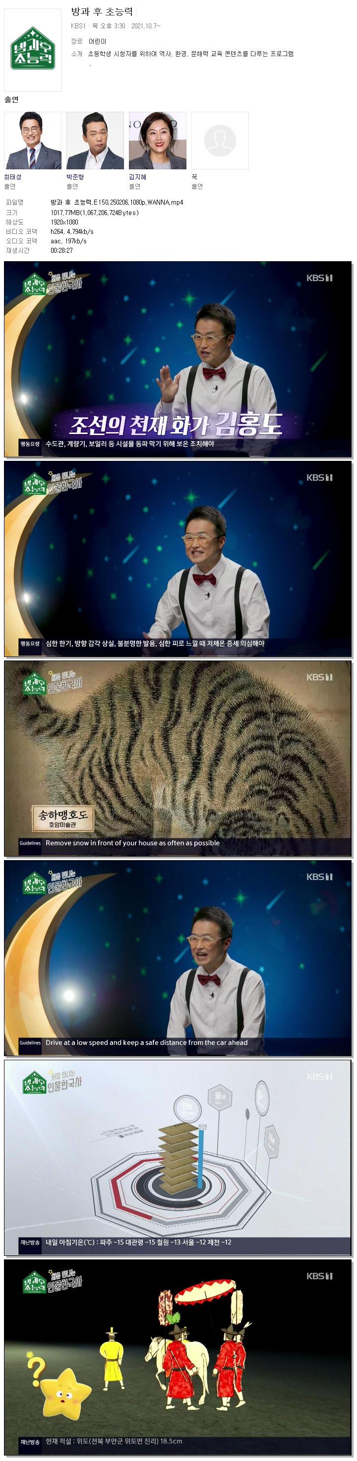 | [KBS1] 방과 후 초능력.E150.250206.1080p.WANNA.mp4 | 1017.8 M | 00:28:27 | 1920x1080 |
