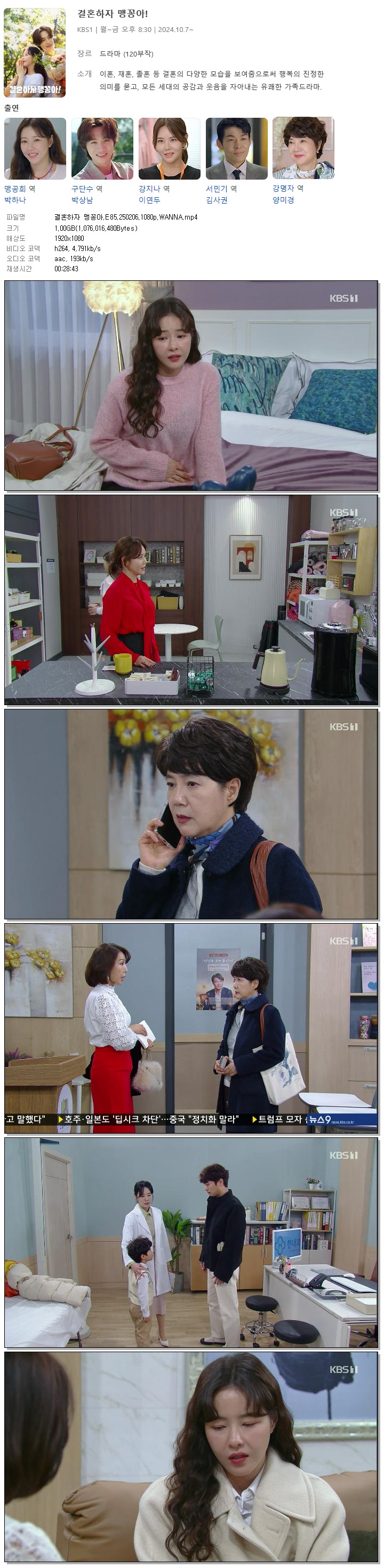 [KBS1] 결혼하자 맹꽁아.E85.250206.1080p.WANNA[박하나, 박상남].mp4 1 G 00:28:43 1920x1080