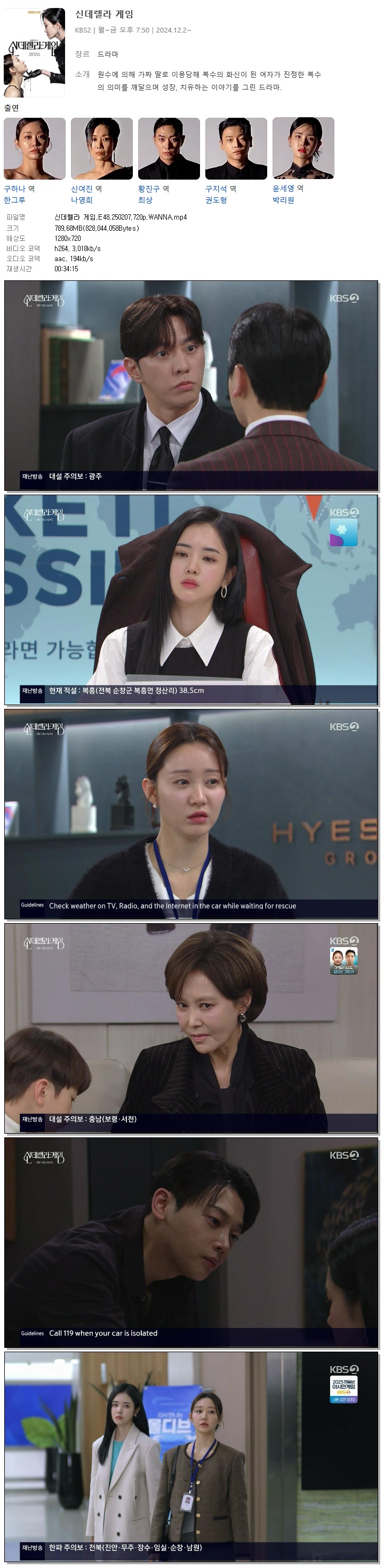 [KBS2] 신데렐라 게임.E48.250207.720p.WANNA[한그루, 나영희].mp4 789.7 M 00:34:15 1280x720
