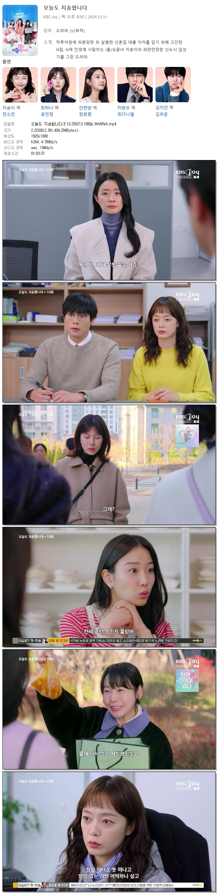 [KBS JOY] 오늘도 지송합니다.E10.250213.1080p.WANNA[전소민, 공민정].mp4 2.2 G 01:03:37 1920x1080
