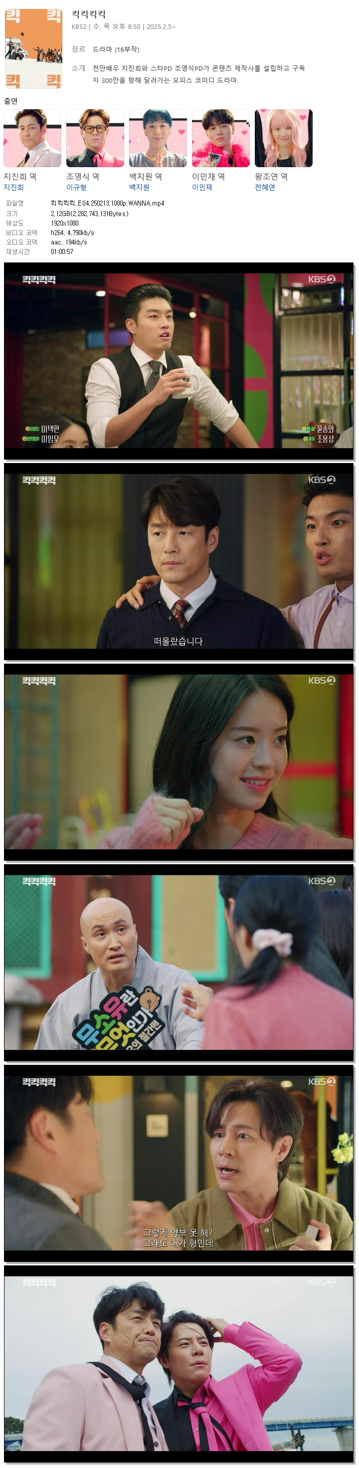 [KBS2] 킥킥킥킥.E04.250213.1080p.WANNA[지진희. 이규형] 다시보기 토렌트