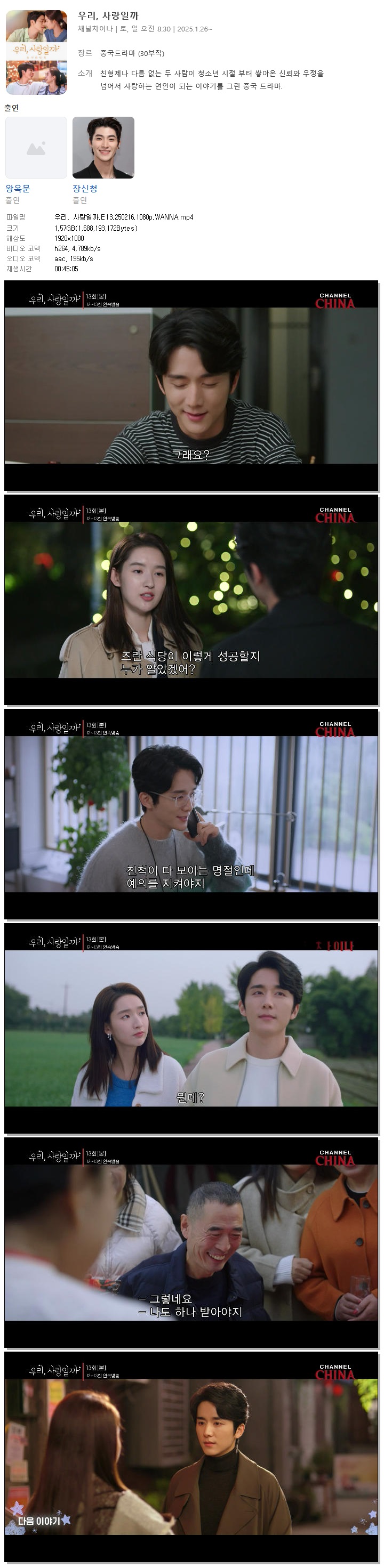 [채널차이나] 우리, 사랑일까.E13.250216.1080p.WANNA[장신청, 왕위원] 다시보기 토렌트
