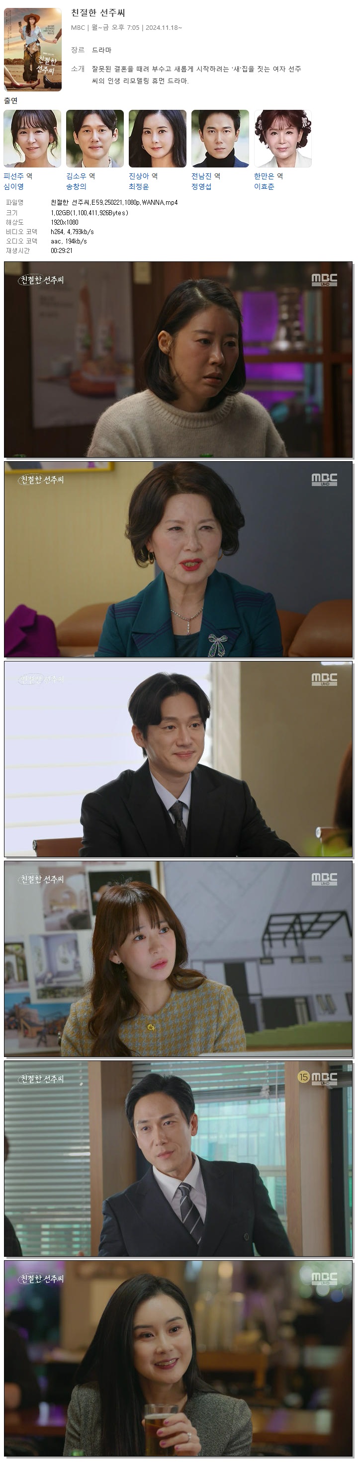 [MBC] 친절한 선주씨.E59.250221.1080p.WANNA[심이영, 송창의] 다시보기 토렌트