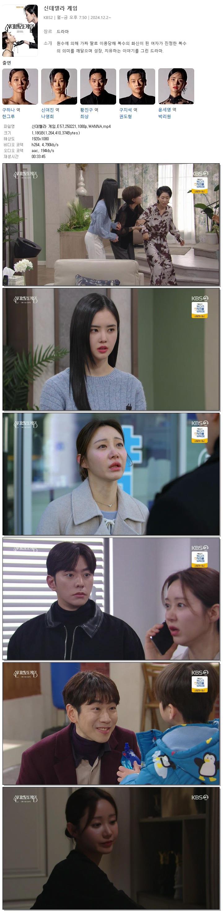 [KBS2] 신데렐라 게임.E57.250221.1080p.WANNA[한그루, 나영희].mp4 1.2 G 00:33:45 1920x1080