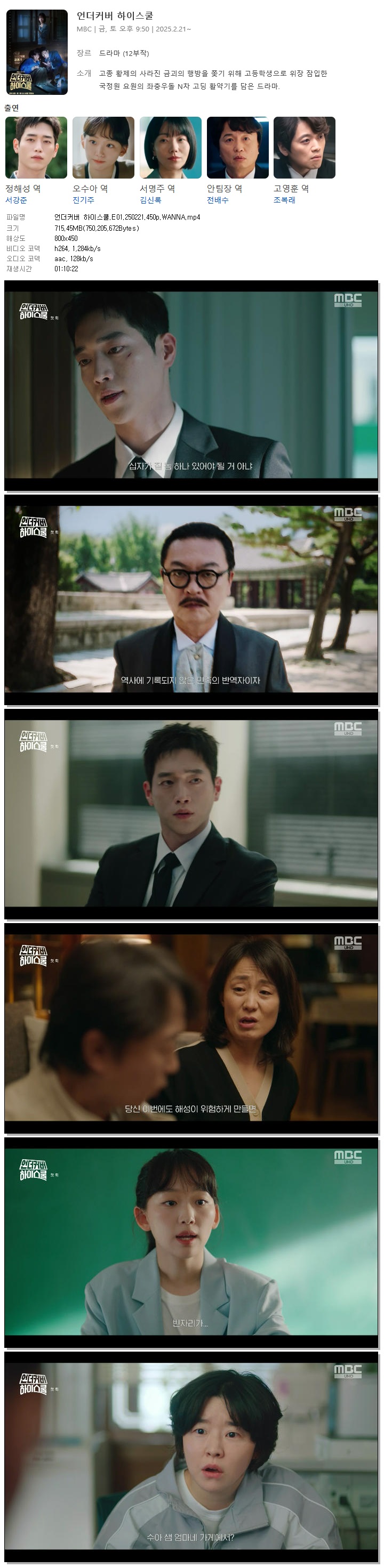 | [MBC] 언더커버 하이스쿨.E01.250221.450p.WANNA[서강준, 진기주].mp4 | 715.5 M | 01:10:22 | 800x450 |
