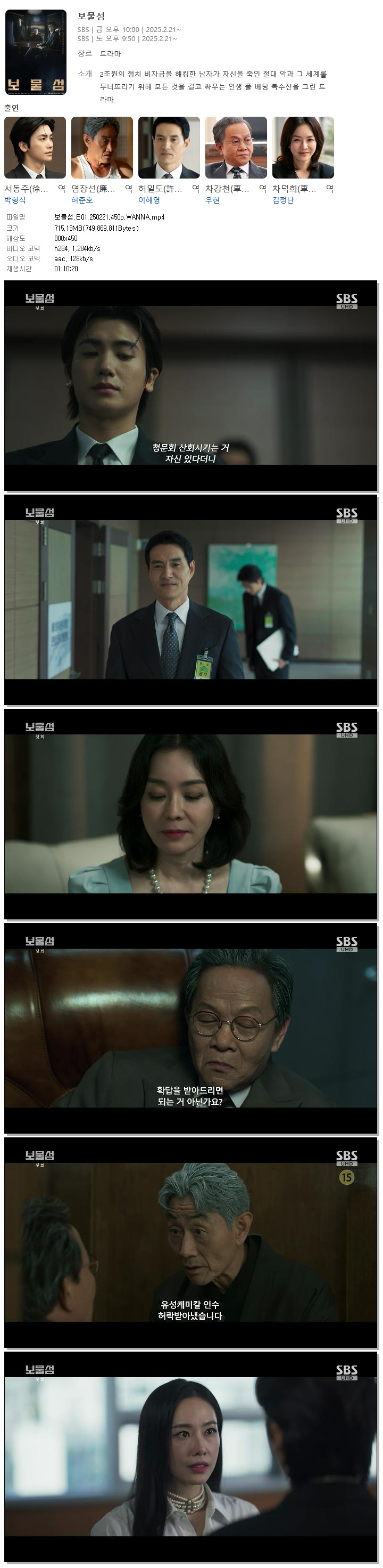 [SBS] 보물섬.E01.250221.450p.WANNA[박형식, 허준호].mp4 715.1 M 01:10:20 800x450