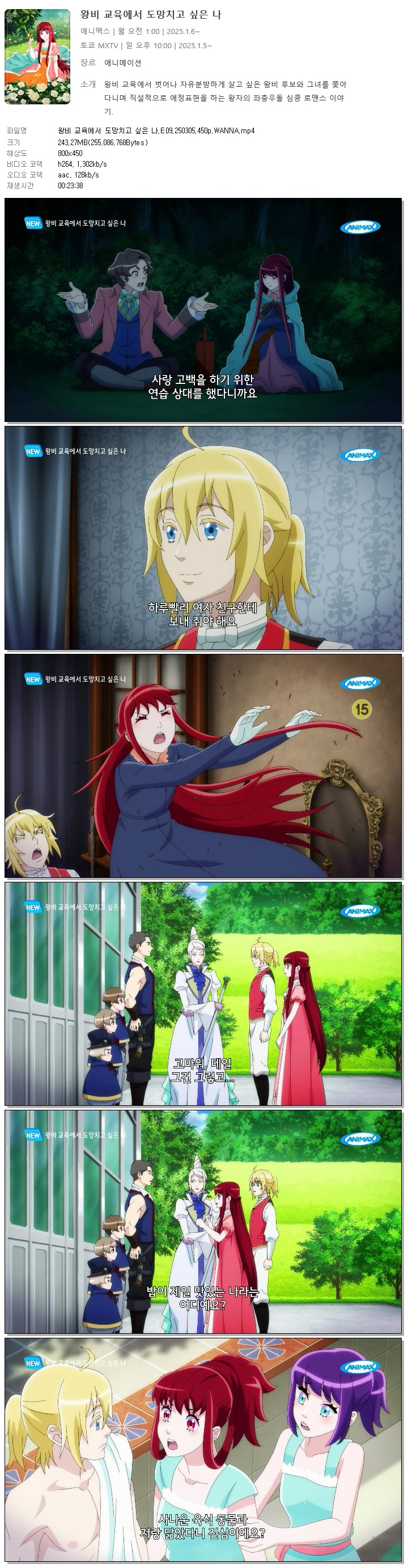 | 왕비 교육에서 도망치고 싶은 나.E09.250305.450p.WANNA.mp4 | 243.3 M | 00:23:38 | 800x450 |