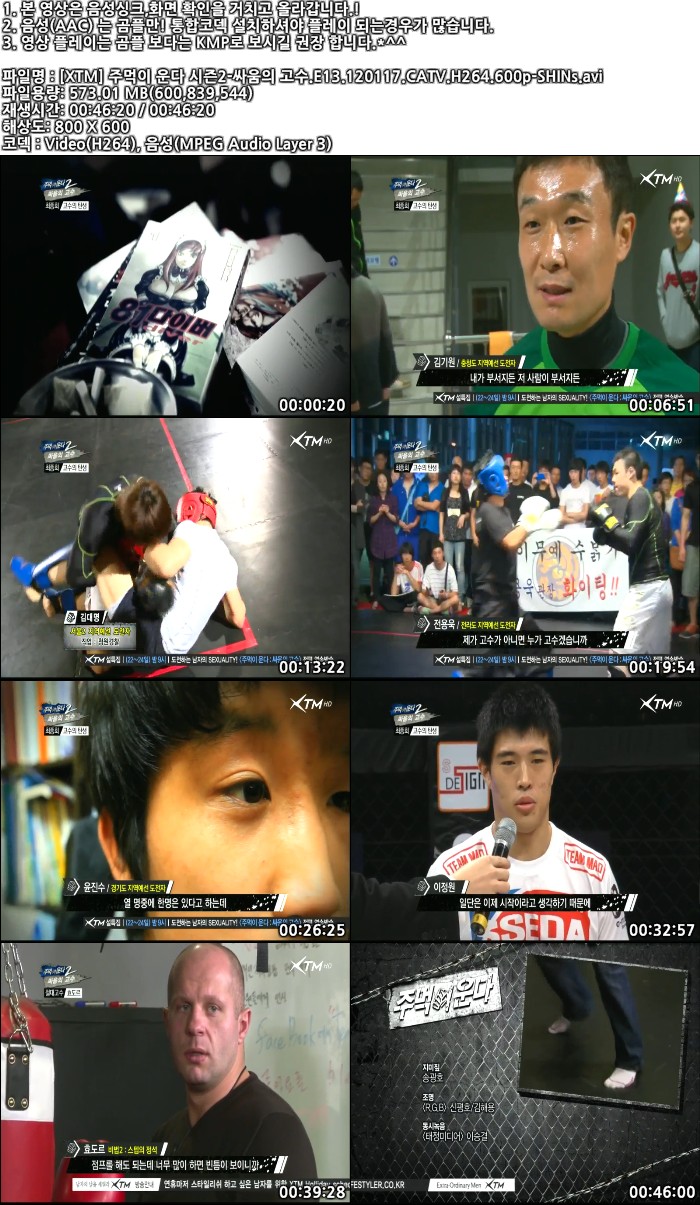 [XTM] 주먹이 운다 시즌2-싸움의 고수.E13.120117.CATV.H264.600p-SHINs.avi 573 M - -