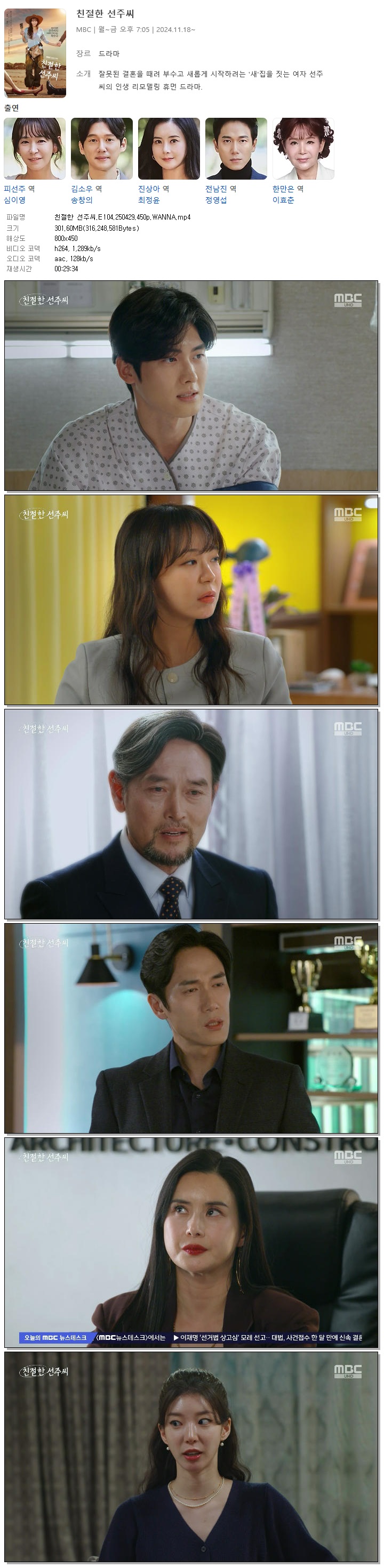 [MBC] 친절한 선주씨.E104.250429.450p.WANNA[심이영, 송창의] 다시보기 토렌트