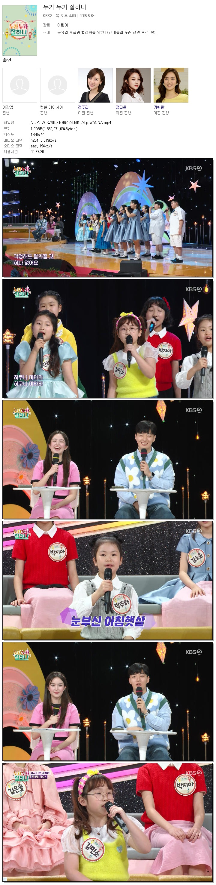[KBS2] 누가누가 잘하나.E962.250501.720p.WANNA[김진현, 캘벨 에이시아].mp4 1.3 G 00:57:30 1280x720