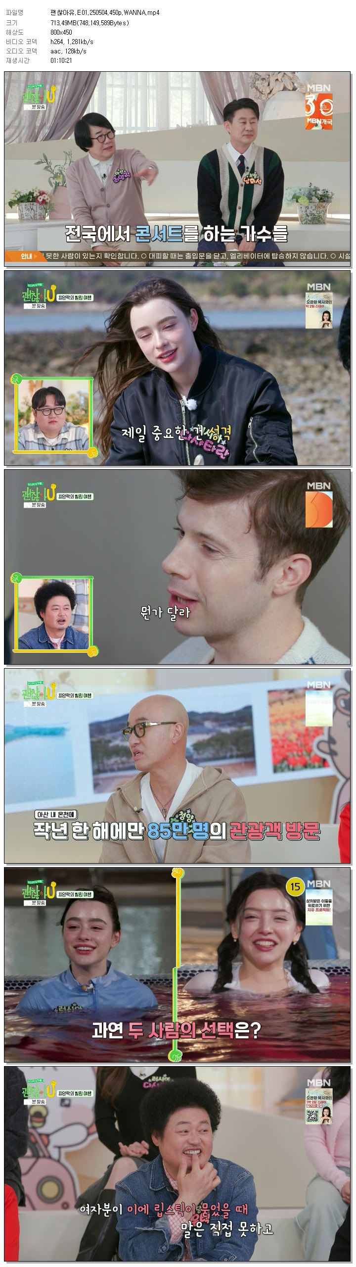 | [MBN] 괜찮아유.E01.250504.450p.WANNA.mp4 | 713.5 M | 01:10:21 | 800x450 |