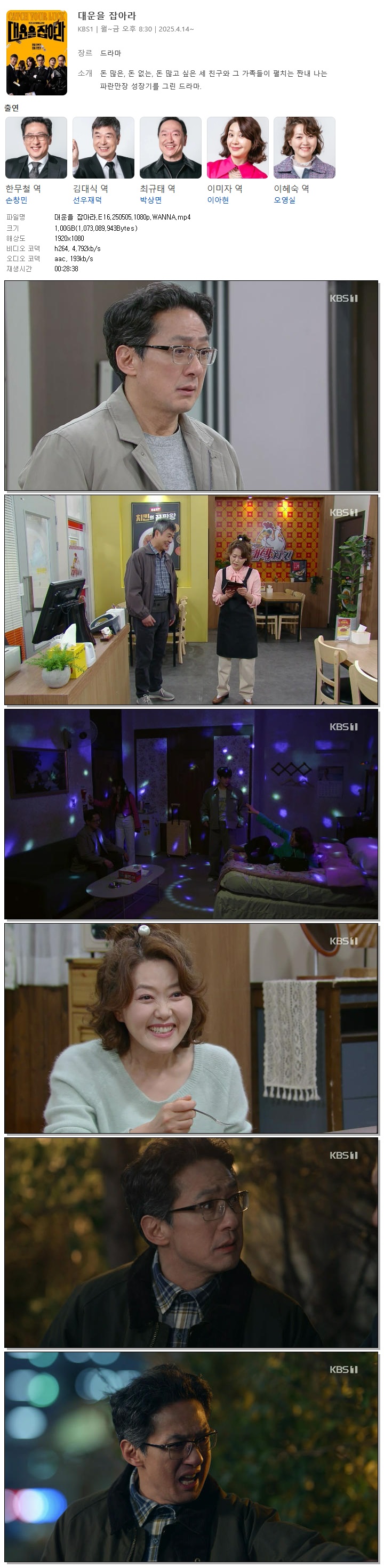 [KBS1] 대운을 잡아라.E16.250505.1080p.WANNA[손창민, 이아현] 다시보기 토렌트