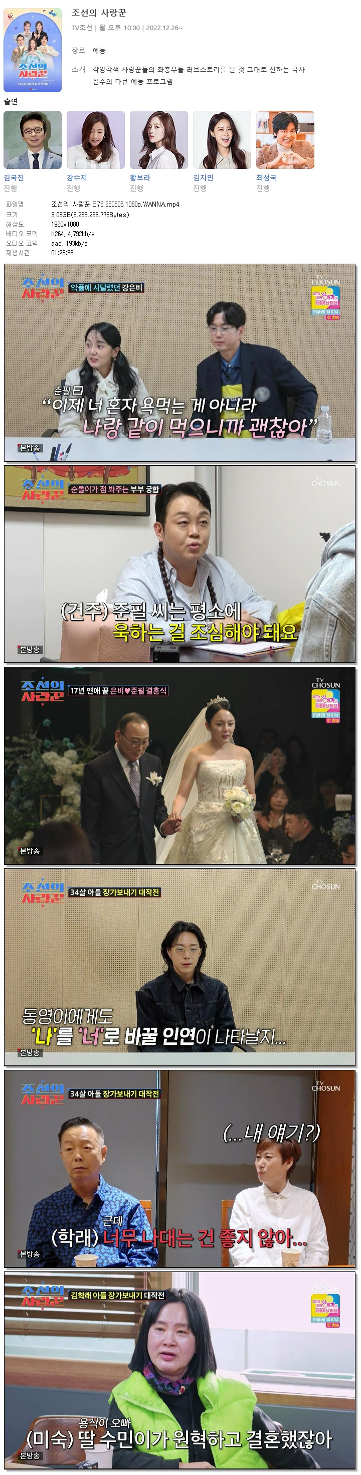 [TV조선] 조선의 사랑꾼.E78.250505.1080p.WANNA[김학래, 강은비].mp4 3 G 01:26:56 1920x1080